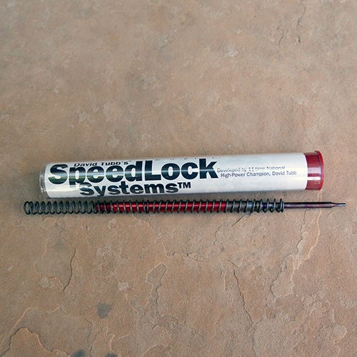 It's been proven that primer ignition is a critical factor in accuracy and consistency. Another benefit of the alloy firing pin is that its lighter weight coupled with a chrome silicon spring results in a higher velocity striker. SpeedLock Systems parts deliver a higher energy impact faster and more efficiently. Our lightweight pin also ignites the primer with less movement of mass, thereby greatly reducing the vibrations associated with firing pin fall. These vibrations begin to cycle and oscillate the muzzle well before the bullet exits the barrel. A SpeedLock Systems pin reduces the level of this oscillation to the extent that the accuracy of your rifle may actually improve. This effect is easily seen by dry firing from a benchrest using a high powered scope. Watch the reticle movement "before" and "after" and the difference is astounding.